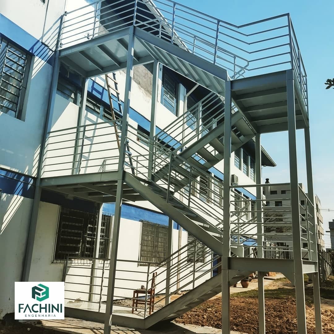A Fachini Engenharia executou a adequação das saídas de emergência da EMEF Atílio Tossin na cidade de Garibaldi - RS, mediante a instalação de escada metálica permitindo a saída segura em caso de incêndio em atendimento ao Plano de Prevenção e Combate a Incêndio - PPCI - da escola.