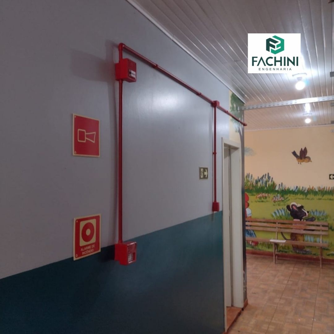 Execução de hidrantes, alarme de incêndio, sinalização e iluminação de emergência e saídas de emergência.