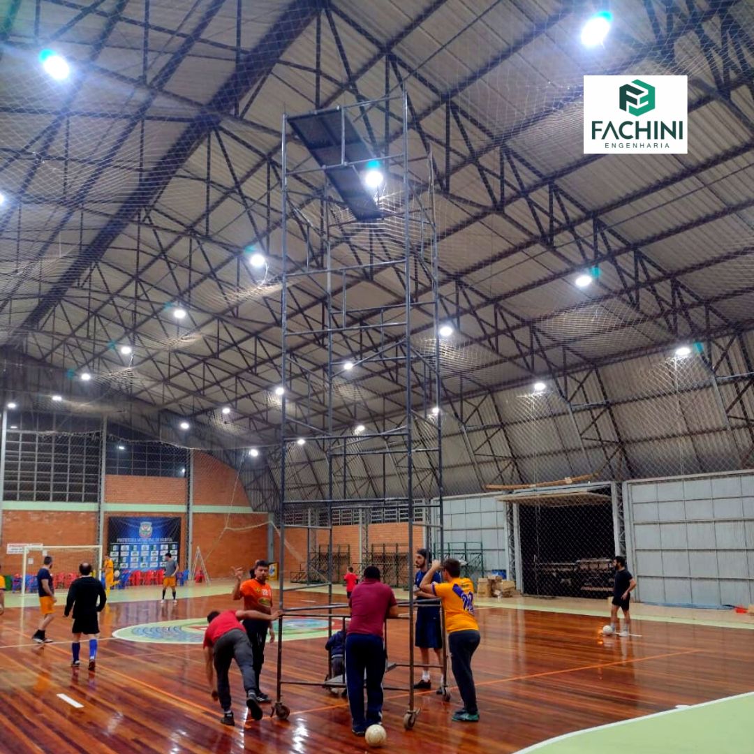 A Fachini Engenharia executou a instalação iluminação do ginásio esportivo da sede do do Município de Maratá-RS, trocando as luminárias existentes por refletores LED de alto desempenho.