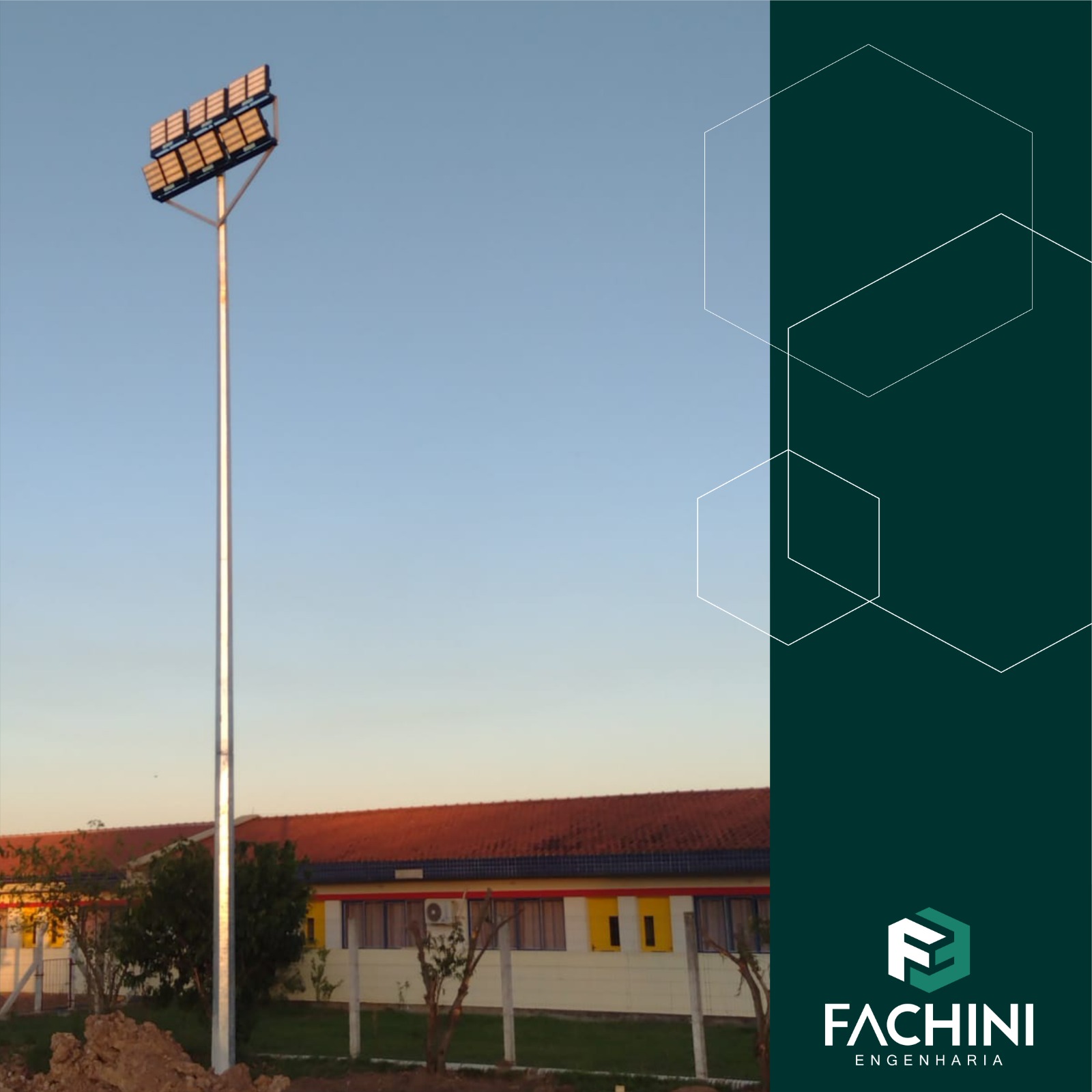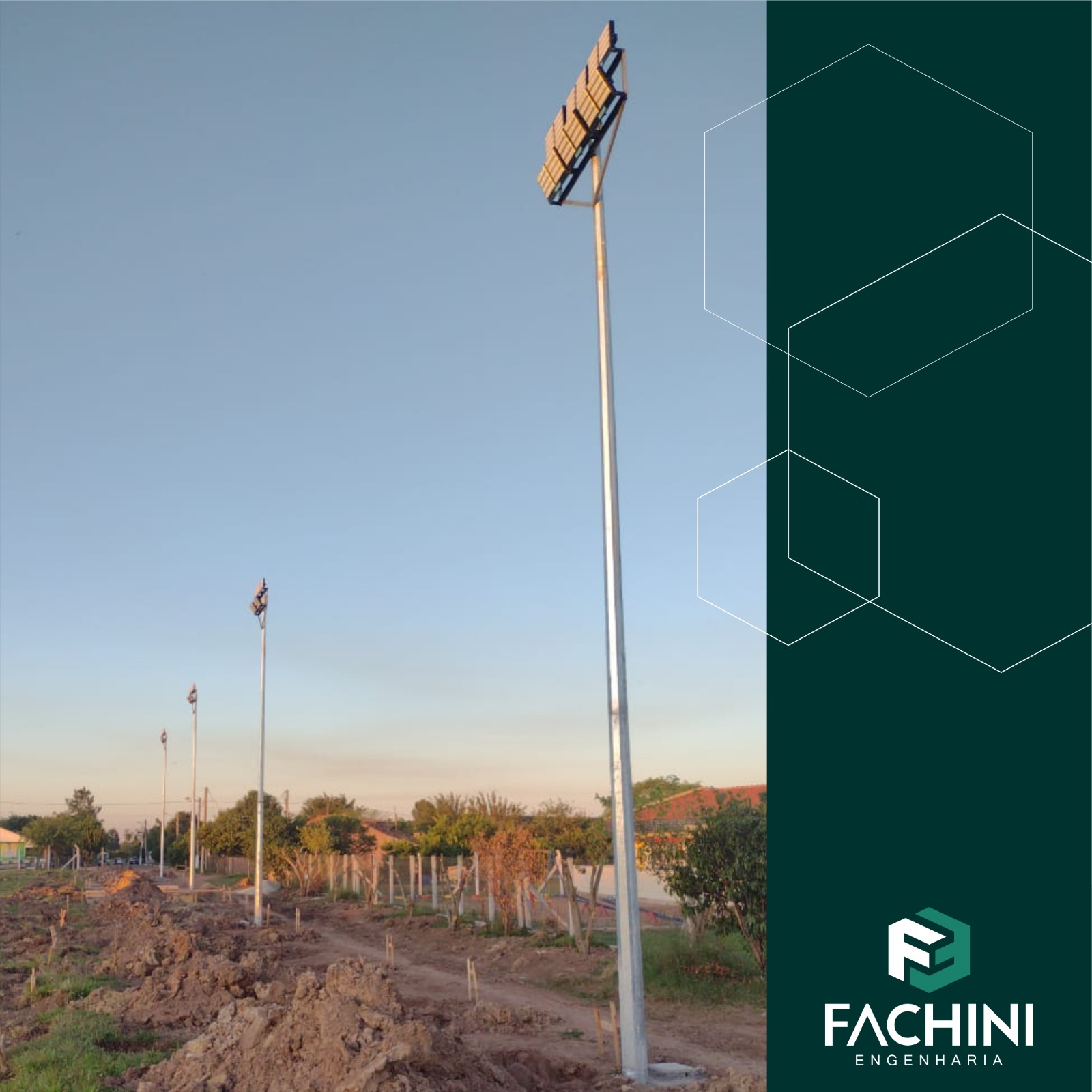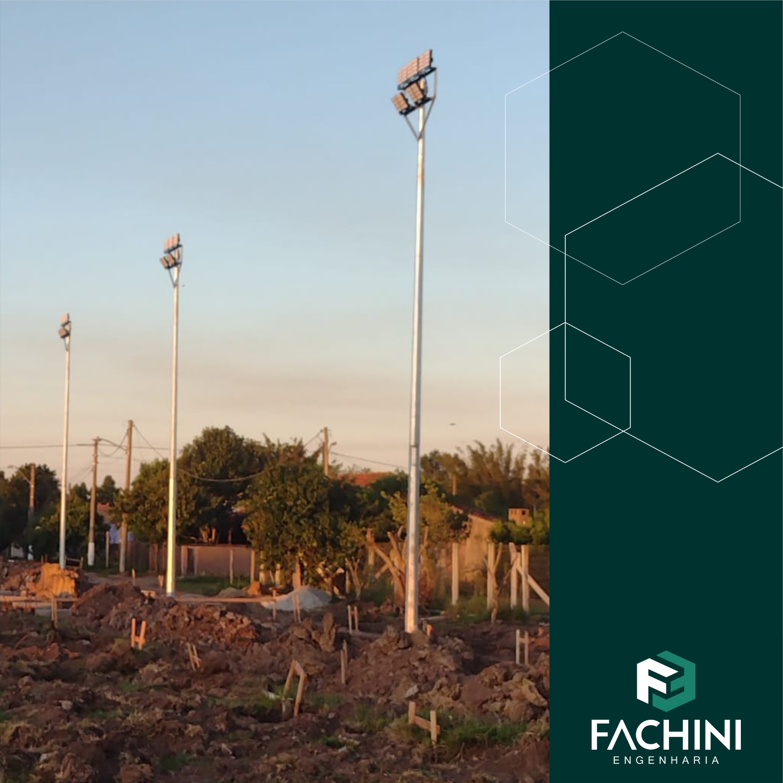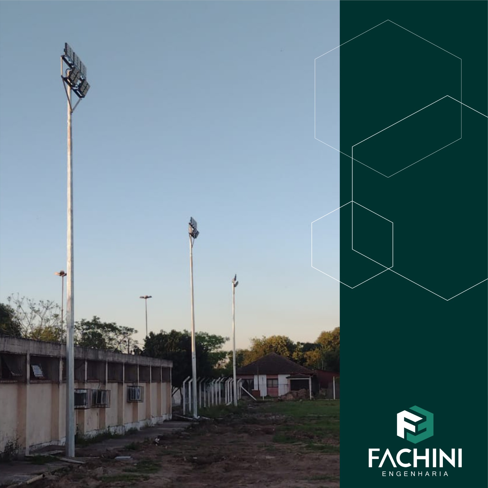 A Prefeitura Municipal de Minas do Leão, contou com os serviços da Fachini Engenharia para melhorar a iluminação do campo de futebol do município.