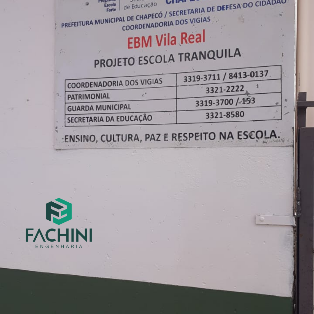 A Fachini Engenharia realizou a instalação de equipamentos de combate a incêndio para PPCI na Escola EBM Vila Real na cidade de Chapecó - SC.