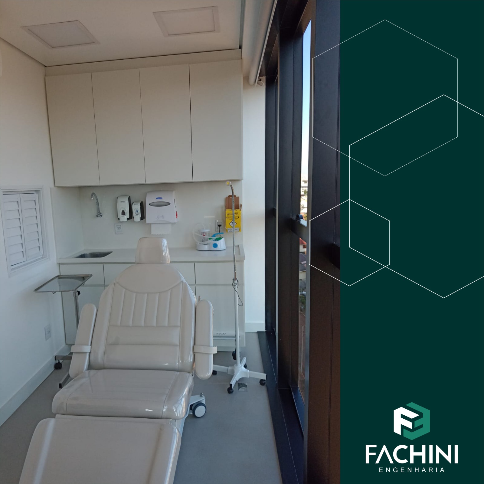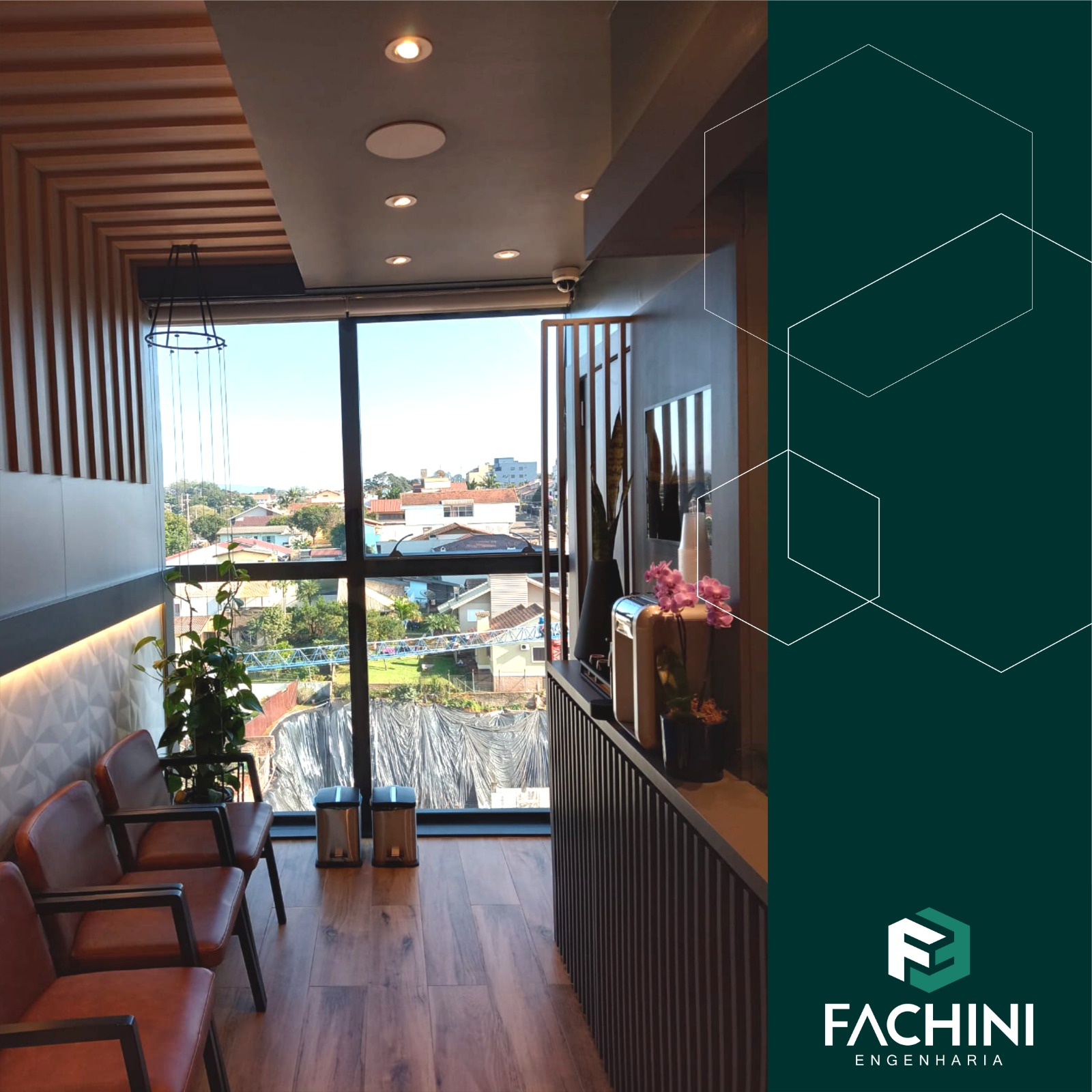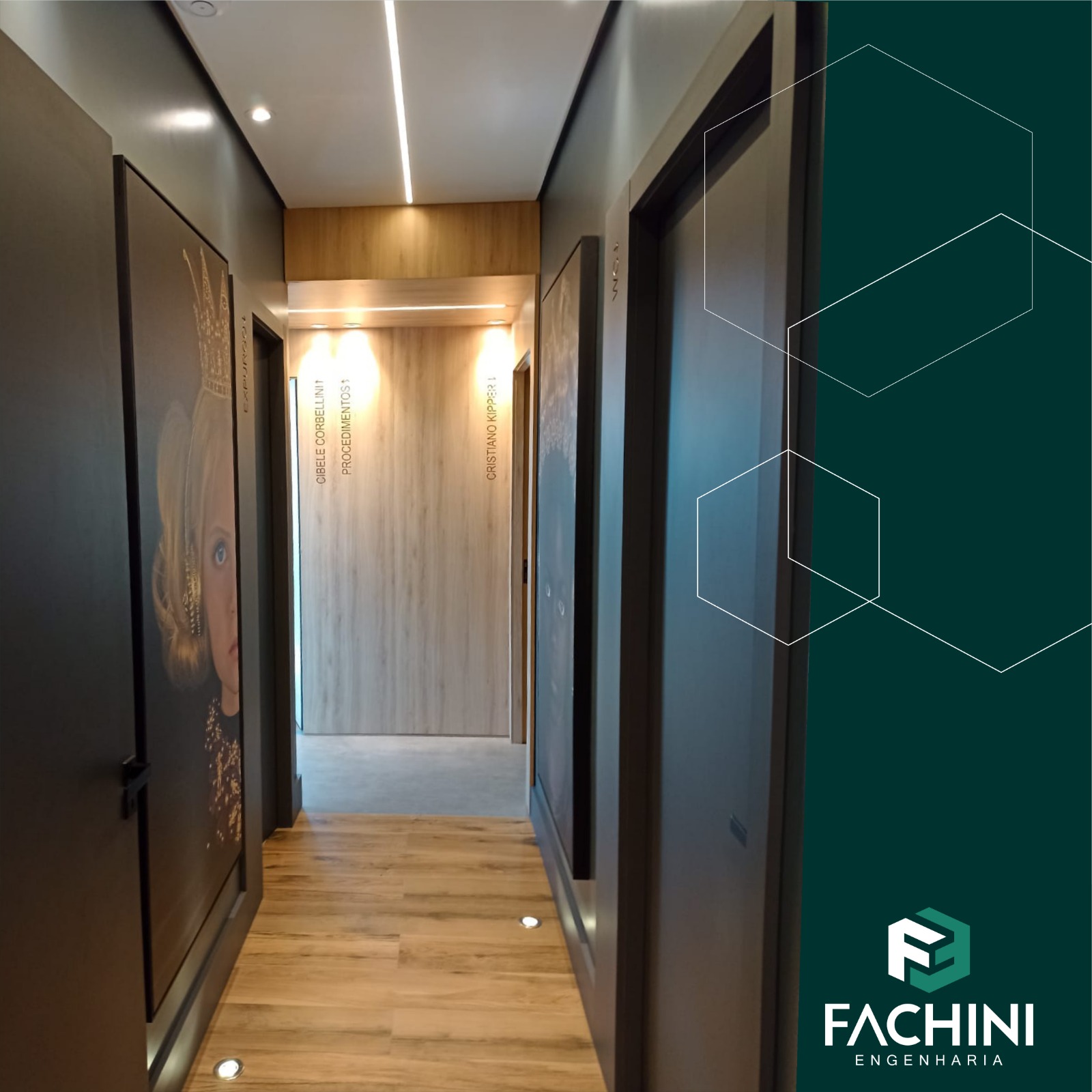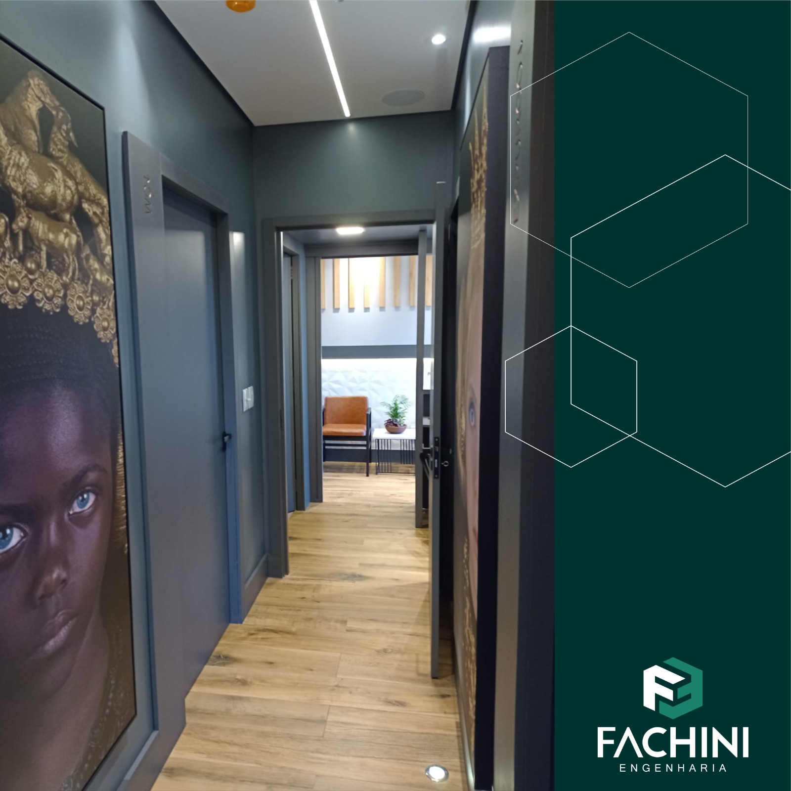 Realizamos toda a construção do espaço, começando do zero, com colocação das divisórias, piso, pintura, forro além de toda parte elétrica, hidrossanitária, PPCI, instalação das louças e metais sanitários.