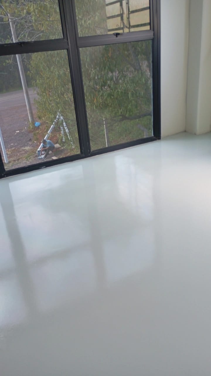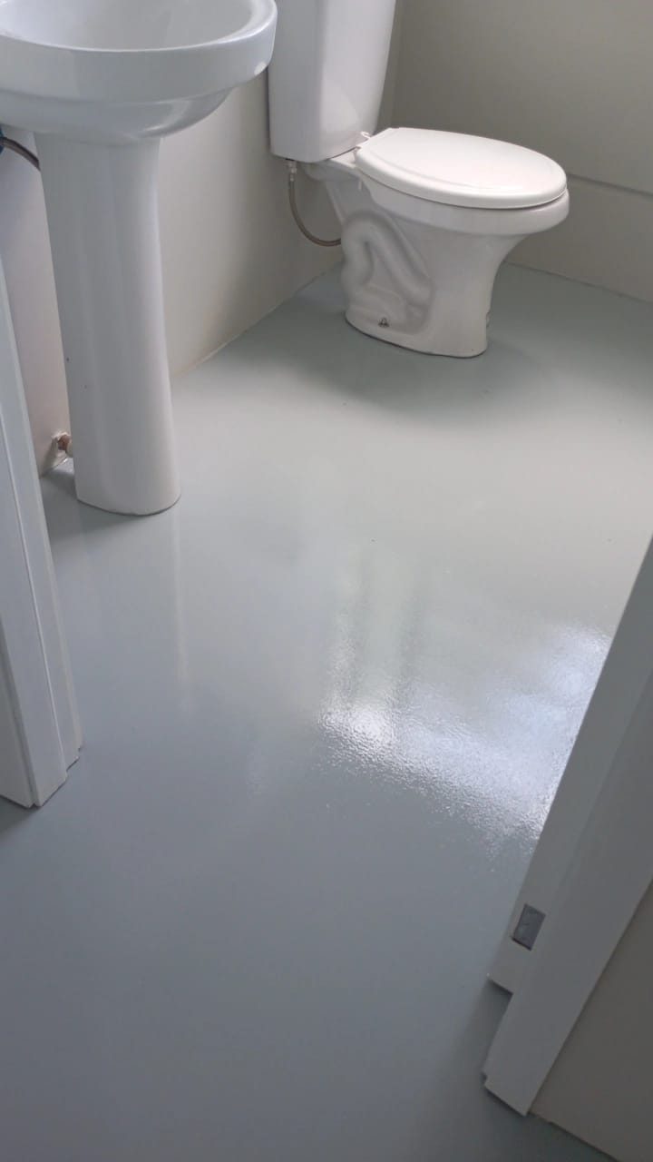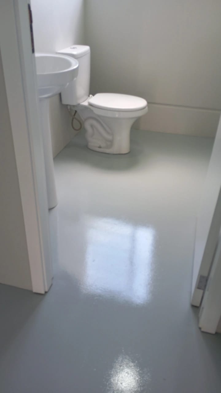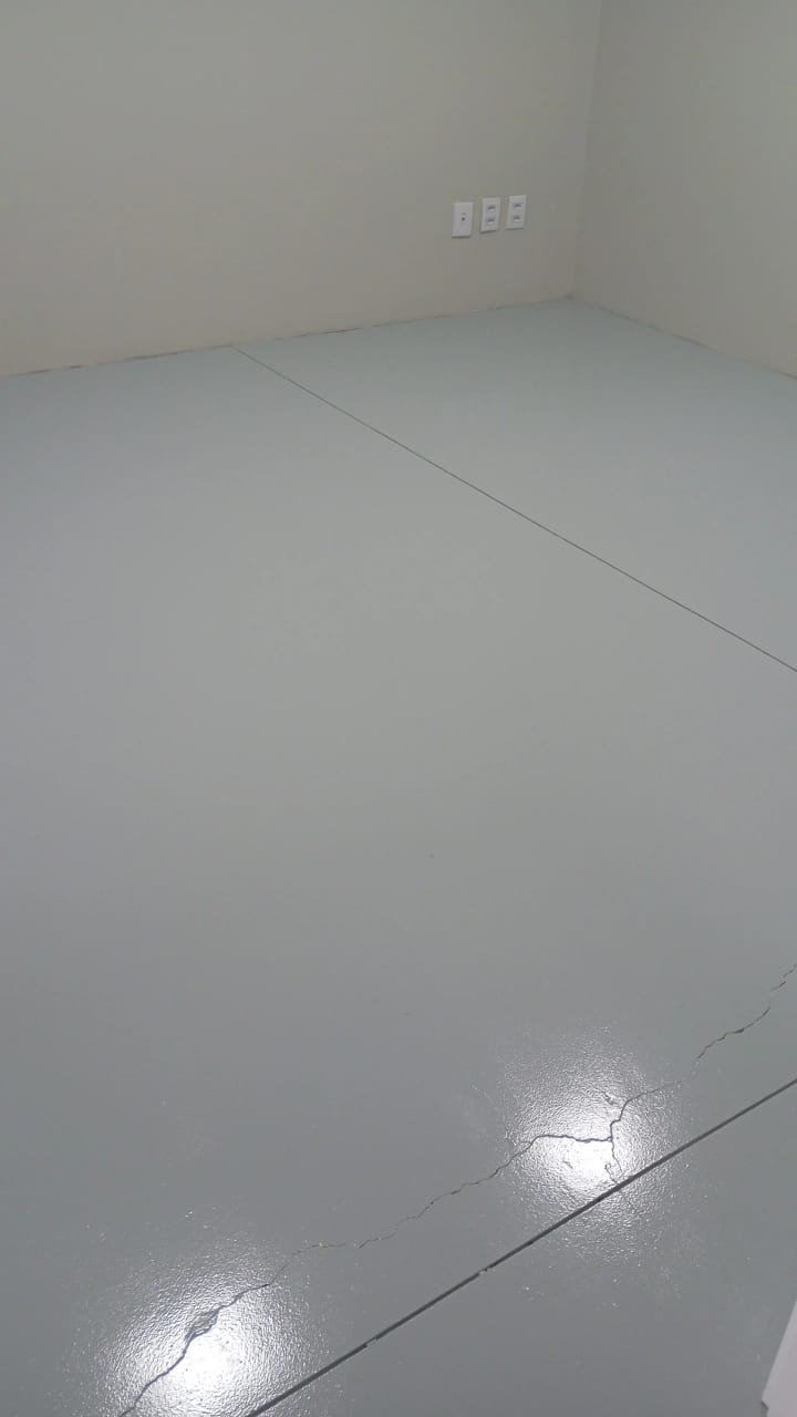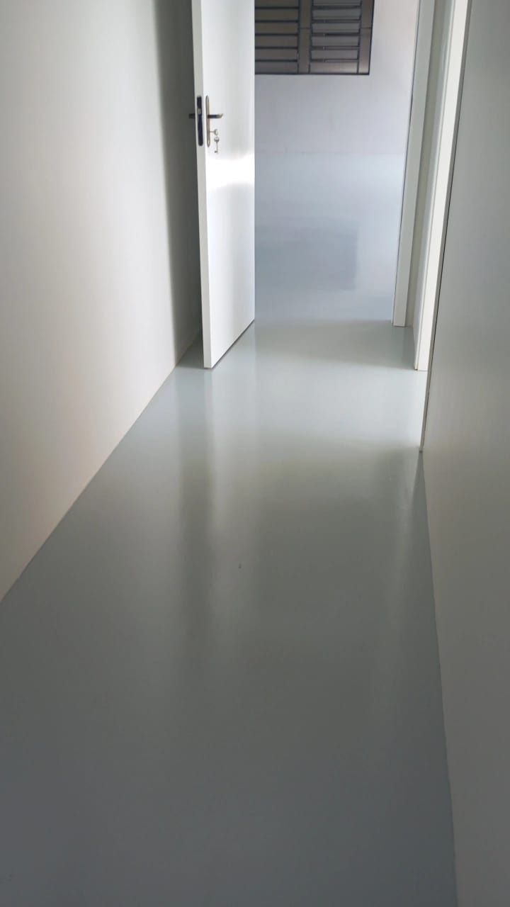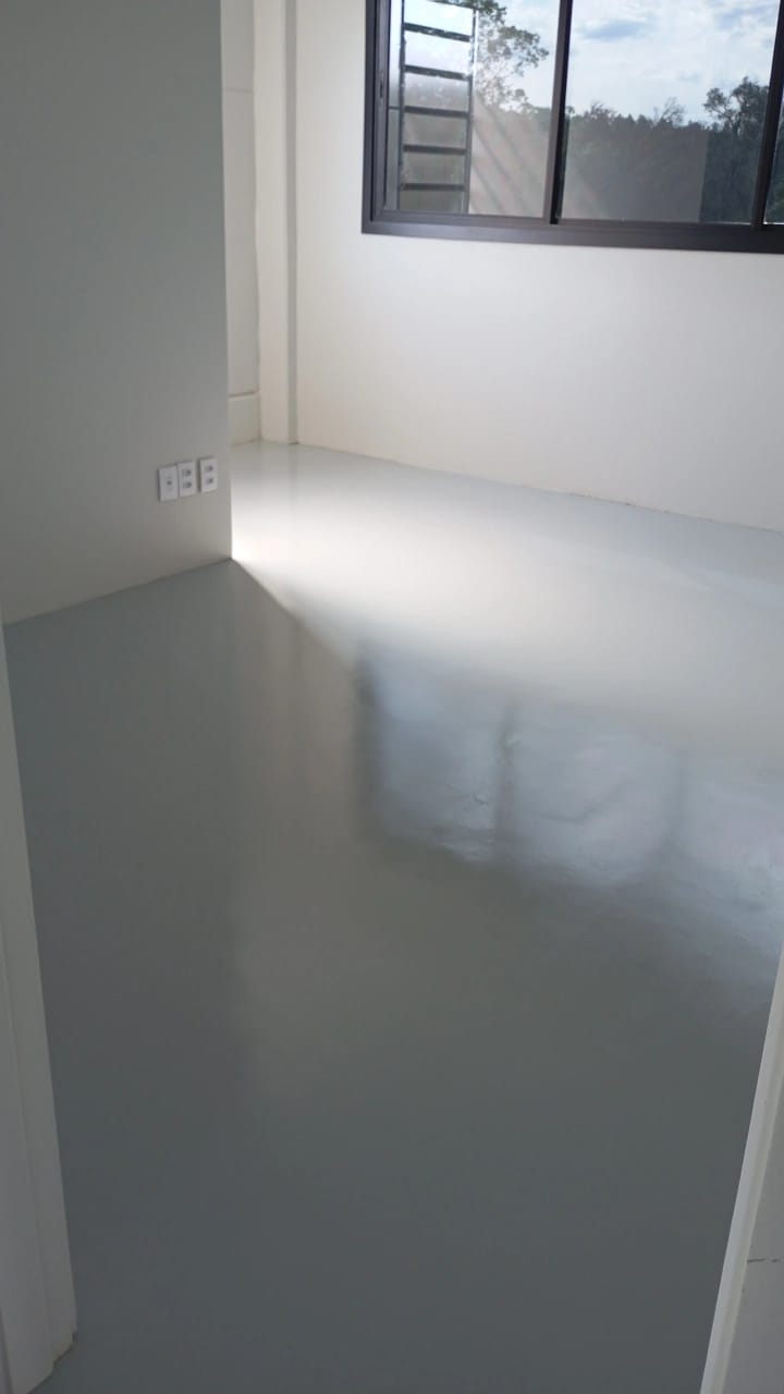 Finalizamos recentemente a pintura de piso em tinta epóxi de alto brilho e alta resistência em um escritório corporativo, aplicado sobre piso de concreto polido.
