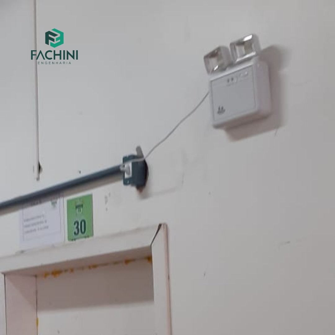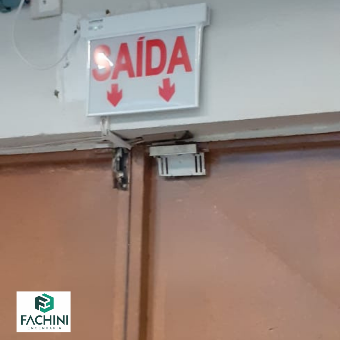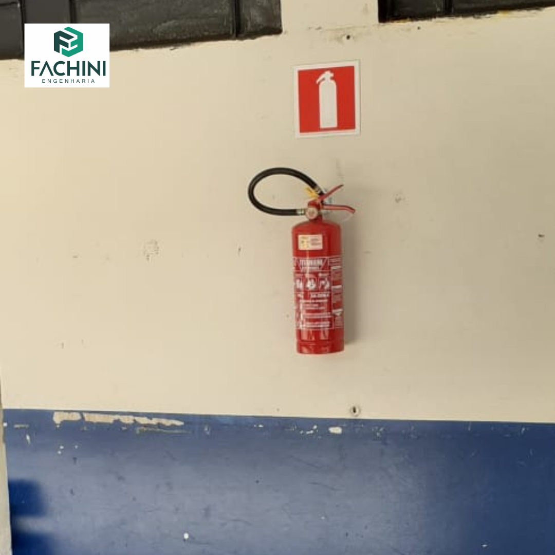 Extintores de incêndio, alarme de incêndio, sinalização e iluminação de emergência.