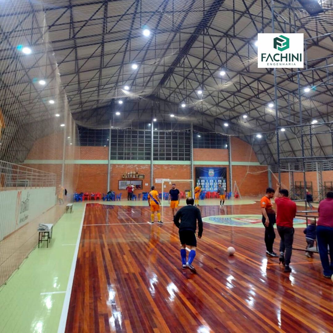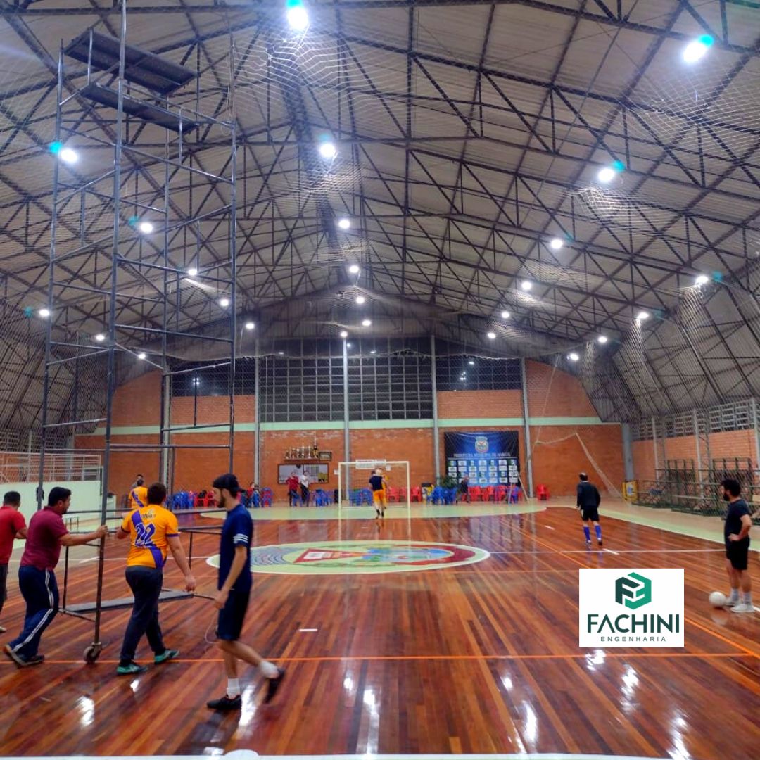 A Fachini Engenharia executou a instalação iluminação do ginásio esportivo da sede do do Município de Maratá-RS, trocando as luminárias existentes por refletores LED de alto desempenho.