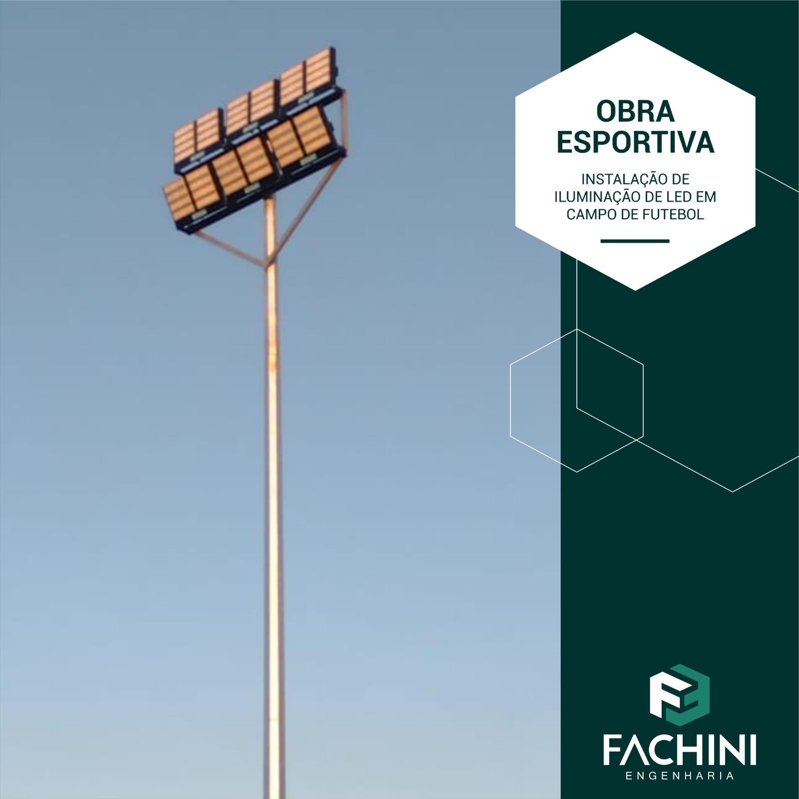 A Prefeitura Municipal de Minas do Leão, contou com os serviços da Fachini Engenharia para melhorar a iluminação do campo de futebol do município.