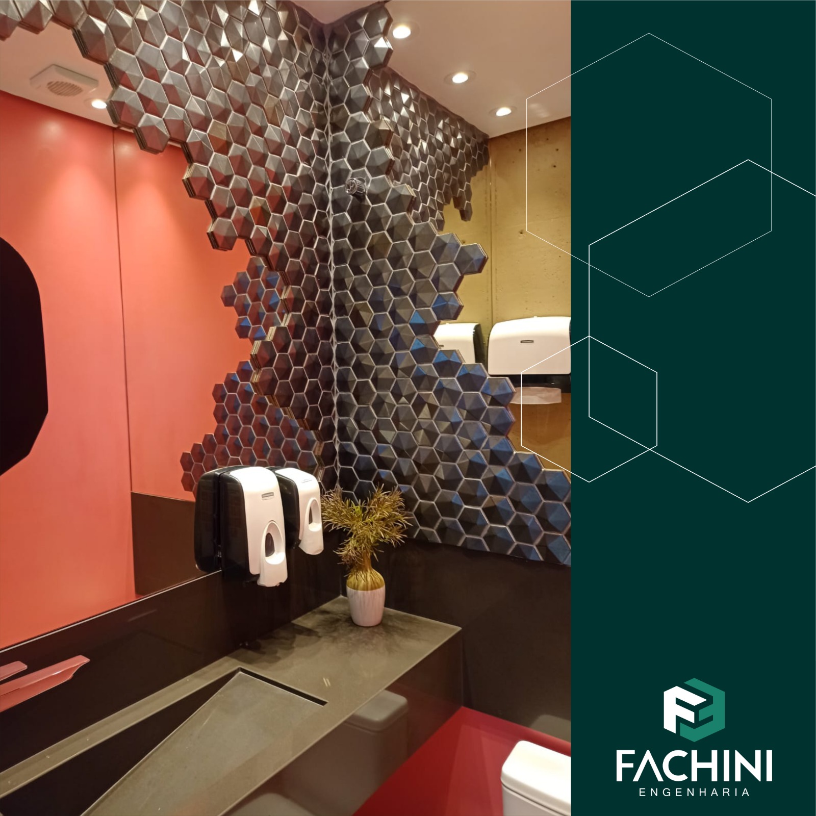 Realizamos toda a construção do espaço, começando do zero, com colocação das divisórias, piso, pintura, forro além de toda parte elétrica, hidrossanitária, PPCI, instalação das louças e metais sanitários.